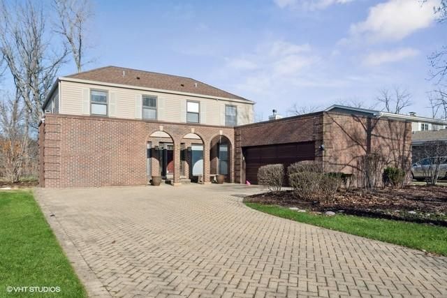 This stately updated 4 bedroom + main floor office North Trail colonial is a fabulous place to call home! Large and inviting foyer welcomes you with ample space to greet your guests and a graceful staircase. Refinished hardwood floors and neutral paint throughout main level. Showstopper contemporary, updated chef's kitchen with granite countertops, under cabinet lighting, stainless appliances, huge island perfect for prep work and serving, tremendous storage and beautiful eat in area overlooking lush backyard, backing to forest preserve/bird sanctuary! High-end appliances include 2 Bosch ovens, Bosch stovetop, Kitchen Aid dishwasher and Sub Zero refrigerator. Kitchen opens to large family room with fireplace and slider to deck opens to spacious living room, creating the perfect flow for holidays and gatherings. Upstairs the primary suite includes an updated bathroom with 2 separate sink/vanity/walk in closets areas a large glass shower. Three nicely sized family bedrooms with wonderful closet space plus TWO full hall bathrooms (not typical to see in this North Trail lay-out!!). Spacious basement with incredible storage area plus crawl space. Private fenced in backyard with deck, sprinkler system and dog run. This beautifully maintained home has a new flat roof over the garage (2021) and new main roof (2010) Other updates include : humidifier (2020), primary bathroom (2017), kitchen (2014), powder room (2018), upstairs small bathroom (2017), washer (2019), and basement carpet (2022). With its great location and neighborhood, this home has it all!